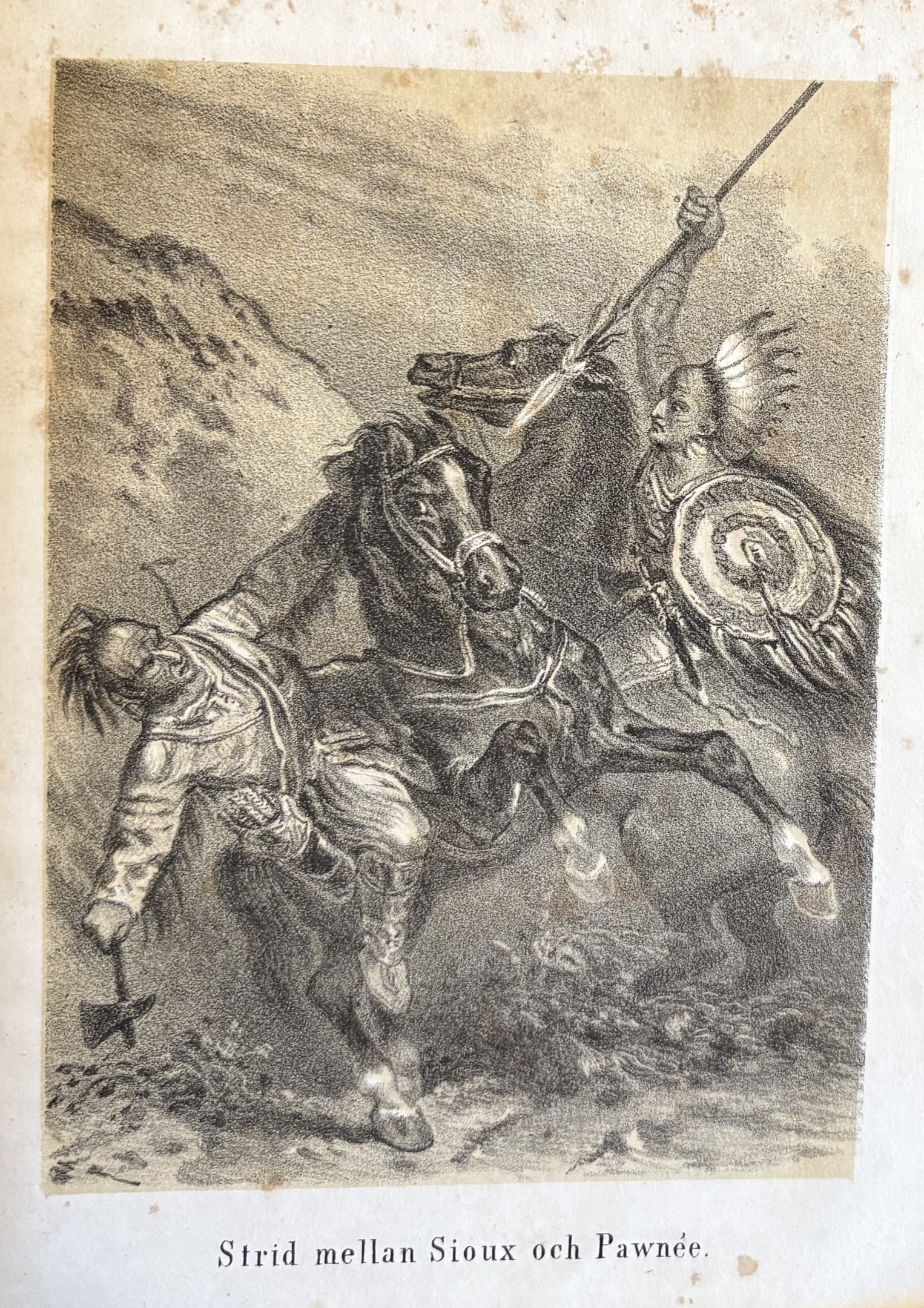 I uppl 1942. [Kapitel] IX. - Örnöga, s.72 och X Strid med indianer s. 79-86. Apacher och pawnier förekommer.